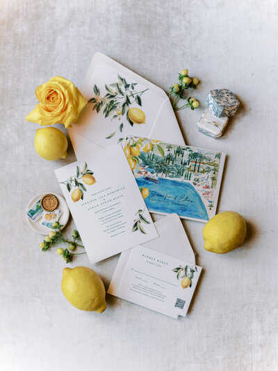 Lush vines of greenery entwine with twinkling lights and elegant chandeliers, creating a dreamy atmosphere. Lemons add a vibrant touch, infusing the air with their citrusy fragrance. It was an idyllic setting that effortlessly blended the charm of an Italian villa with the warmth of home, perfect for a night of romance and celebration.